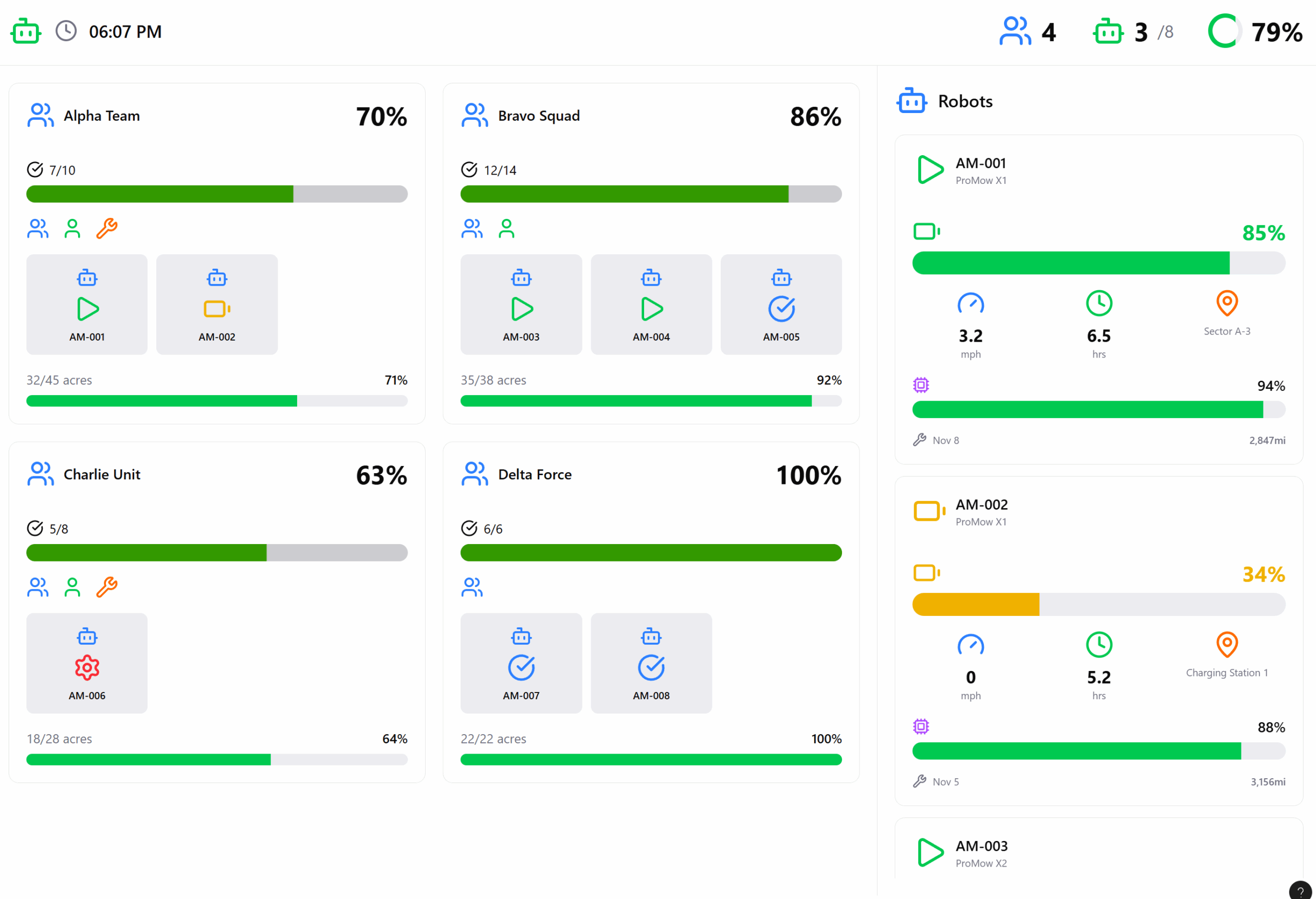 Plan crews, deploy mowers and manage resources across sites. AI planning suite optimizes schedules, assignments and maintenance. Control your entire operation from one dashboard.